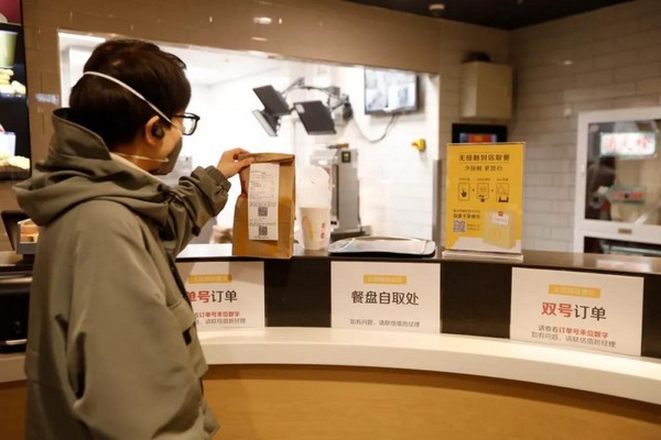 為了讓顧客放心,麥當(dāng)勞在安全服務(wù)的前提下,餐廳實(shí)施“無接觸配送”和“無接觸到店取餐”。所有外送訂單均附上“麥樂送放心卡”,標(biāo)注生產(chǎn)、配膳、外送人員姓名及體溫,做到餐品、人員可追蹤。顧客可選擇讓外送員將餐品送到指定位置取餐,在手機(jī)、餐廳自助點(diǎn)餐機(jī)或柜臺點(diǎn)餐后,無論堂食或外帶,員工都會將制作好的餐點(diǎn)裝入打包袋并封口,放置到取餐處。