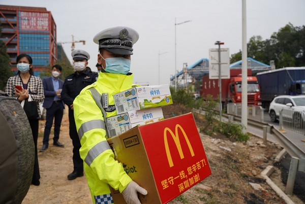 你們在一線戰(zhàn)疫,我們來為你補(bǔ)給!隨后,市關(guān)愛辦攜手伊利集團(tuán)、麥當(dāng)勞先后前往光明羌下公安檢查站、寶安區(qū)松安防疫檢查點(diǎn),為正在一線忙碌的工作人員,送上愛心牛奶與熱乎乎的愛心午餐?!澳銈冃量嗔恕薄ⅰ袄^續(xù)加油”……每發(fā)放一次牛奶與午餐,工作人員都不忘了戰(zhàn)疫者們致敬致謝。