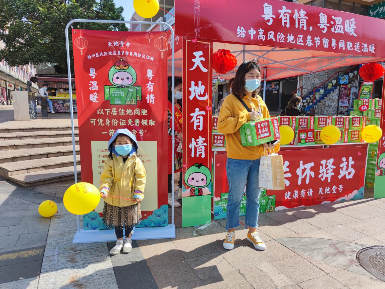 據(jù)了解,天地壹號在廣東市場開展的“粵有情粵溫暖”公益活動,2月1日至2月3日,將在廣州、深圳、東莞、佛山、中山、珠海、惠州等7個珠三角城市22個區(qū)鎮(zhèn)的中心地帶開設(shè)“關(guān)懷驛站”,共準(zhǔn)備了近3萬份健康禮包?!拔覀冊诰〇|還準(zhǔn)備了2000萬元的親情補貼券,如果大家想家了,可以領(lǐng)取這份親情補貼,為家人寄去思念和祝福?!鄙鲜鲐?fù)責(zé)人說。