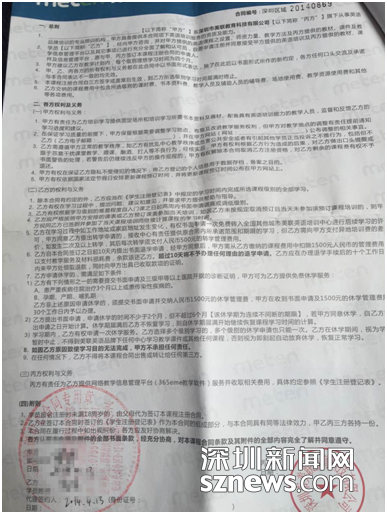 合同上標明著“超過10天將不予辦理任何理由的退學(xué)申請”