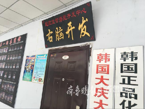 在德州市三八路人民醫(yī)院北門樂尚超市二樓221室,有一家名為“超腦益智潛能開發(fā)中心-右腦開發(fā)”的培訓機構。記者發(fā)現(xiàn),該培訓機構設立于一間大辦公室內,門口上方掛有一塊黑色牌匾,牌匾上方刻有紅字“超腦益智潛能開發(fā)中心”,下方是“右腦開發(fā)”四個黃字,辦公室內部則用玻璃隔斷隔出了三個房間,房間內關于“右腦開發(fā)”的宣傳內容隨處可見。記者在最里面的房間見到了該機構負責人,是名女性,自稱姓王。隨后,記者以咨詢的名義,向其了解“右腦開發(fā)”的課程,并進行了現(xiàn)場體驗。