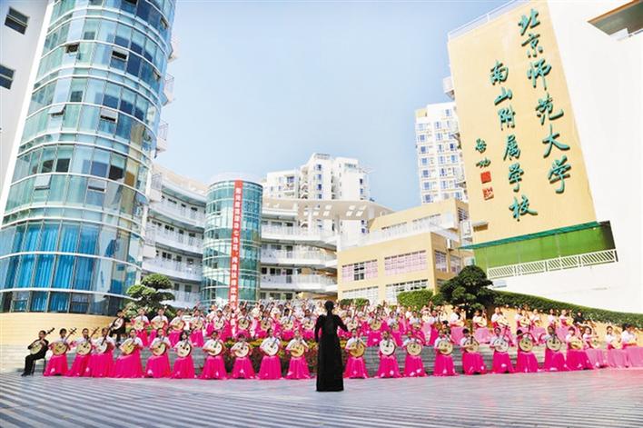 發(fā)掘民族器樂個(gè)性,傳承優(yōu)秀文化精髓,既是藝術(shù)工作者的一種情懷,更是教育工作者的一種使命。北京師范大學(xué)南山附屬學(xué)校小學(xué)部秉承實(shí)施“個(gè)性化素質(zhì)教育”的辦學(xué)理念,在“校園七色花,朵朵都精彩”的學(xué)生發(fā)展觀指引下,于2013年10月組建了深圳市第一支少兒阮樂團(tuán),樂手平均年齡10歲,是國內(nèi)平均年齡最小的阮樂團(tuán)。經(jīng)過數(shù)年的努力,樂團(tuán)發(fā)展到百人規(guī)模,頻頻登上國內(nèi)外高規(guī)格平臺(tái)演出,成為享譽(yù)國內(nèi)外的少兒阮樂團(tuán)。在第二批全國中小學(xué)中華優(yōu)秀傳統(tǒng)文化藝術(shù)傳承校中,北京師范大學(xué)南山附屬學(xué)校實(shí)力上榜。