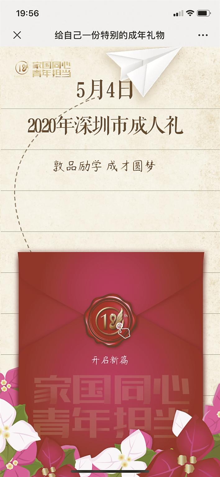 5月4日,由深圳市文明辦、深圳市教育局、共青團深圳市委員會主辦,深圳報業(yè)集團深圳晚報社承辦的“2020深圳市成人禮”線上宣誓典禮舉行,吸引了深圳眾多即將成年的學子積極參加。對這次特殊的成人宣誓典禮,學子們紛紛表示很特別,很暖心。