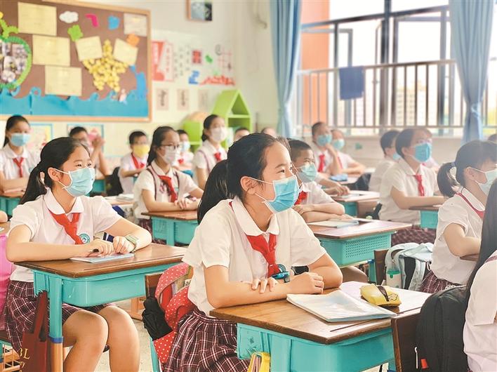 結(jié)束“只聞其聲,不見其人”的網(wǎng)課,坐在教室里和許久未見的同學(xué)同聲相應(yīng),初二年級的學(xué)生丘春逸不由感慨萬千:“翻書和寫字的聲音不斷劃破教室的空氣,整齊劃一的朗誦聲響徹耳畔,這才是我向往的生活。”
