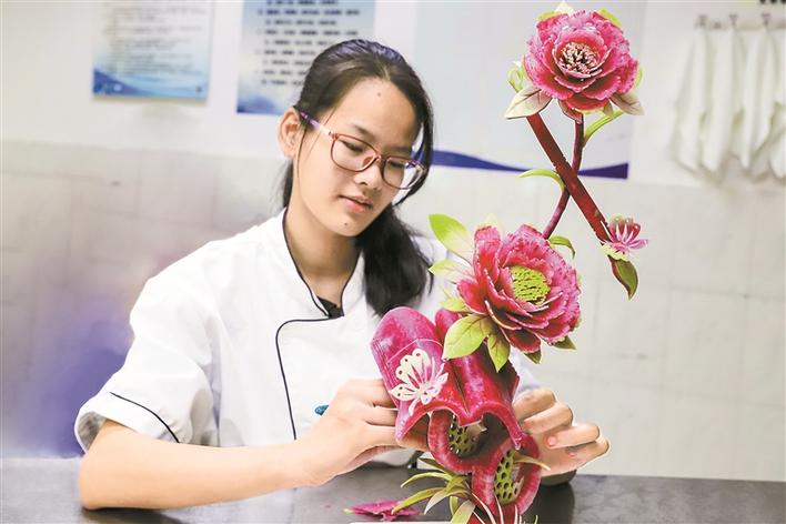 在寶職集團二校區(qū)的培養(yǎng)下,羅鳳鳴獲得了廣東省技能大賽烹飪團體項目二等獎,并獲得首批中職國家獎學(xué)金。