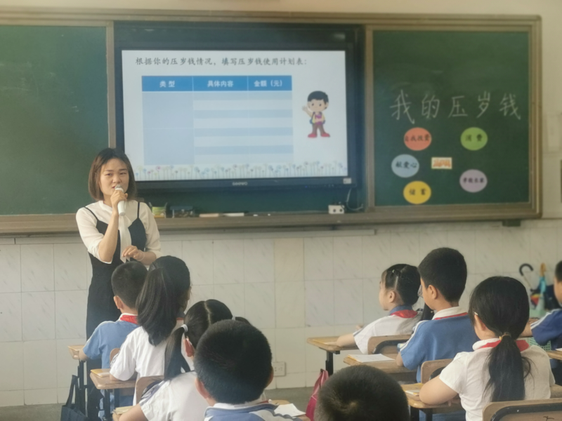 三年級由張瑩老師執(zhí)教《我的壓歲錢》一課,一開始通過學生感興趣的春節(jié)習俗-壓歲錢引入,學生興趣高漲。接著通過古代“祟”的傳說視頻故事導入,讓學生了解了壓歲錢的由來,明白了壓歲錢背后的文化和所代表的寓意,培養(yǎng)孩子的感恩之心。接著班級“小富翁”紛紛分享自己的壓歲錢,開心之情溢于言表,他們迅速與小組合作分享自己準備如何使用這些錢。根據(jù)學生匯報總結(jié)出可以從消費、孝敬父母、獻愛心、儲蓄和自我投資等幾方面,合理分配自己的壓歲錢。最后學生再次根據(jù)自己的壓歲錢情況,制定了自己專屬的壓歲錢使用計劃表。