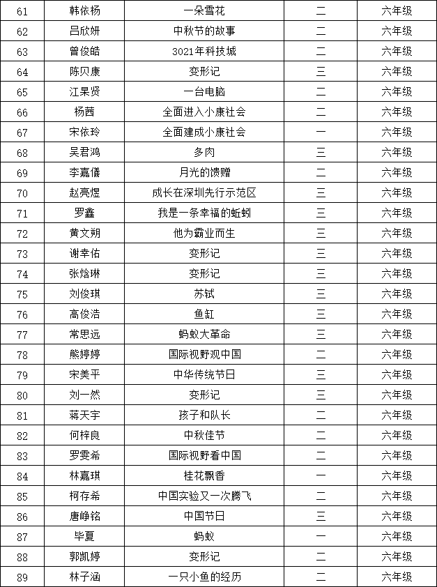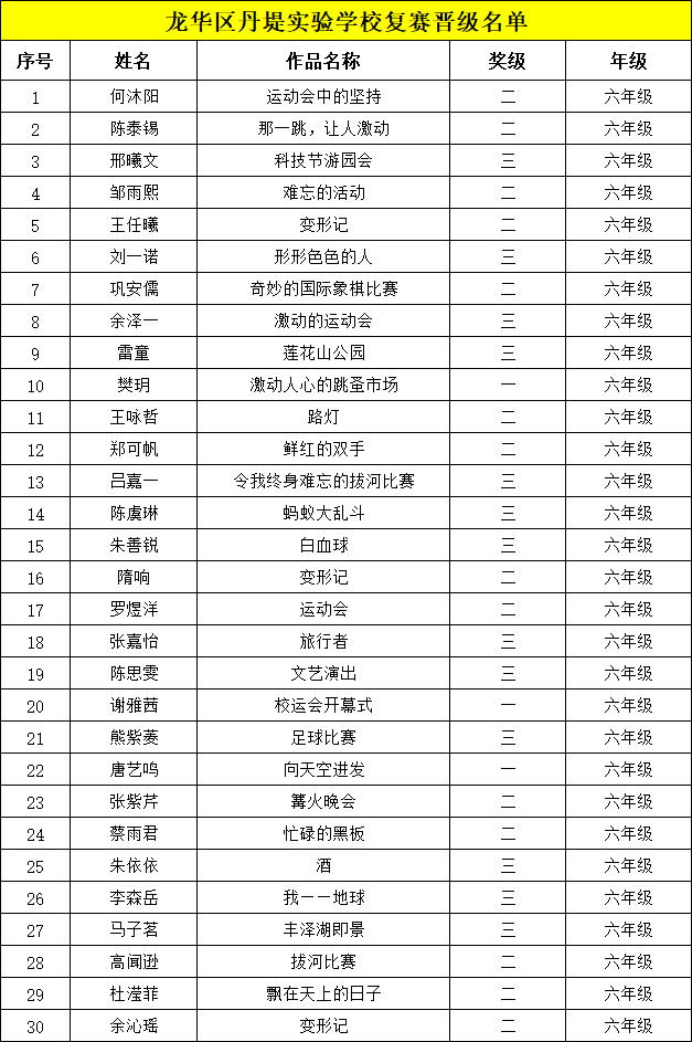 自2021年1月,活動征稿啟動以來,獲得了深圳市廣大中小學生、教師、文學愛好者的熱烈響應積極參與,吸引了深圳百余所學校的上萬人關注報名?,F公布龍華區(qū)丹堤實驗學校晉級復賽名單如下: