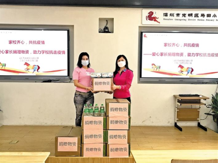 近日,光明區(qū)馬田小學(xué)六(3)班羅心如家長向?qū)W校捐贈(zèng)口罩1000只、消毒液200瓶等愛心物資。