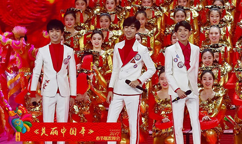 除夕之夜,以“大美中國(guó)夢(mèng) 金雞報(bào)春來”為主題的雞年春晚如約而至。以“歡樂頌五美”與TFBOYS共同奉獻(xiàn)的《美麗中國(guó)年》開場(chǎng),以李谷一、關(guān)牧村、高音、劉雨欣等新老藝人演唱《難忘今宵》結(jié)尾,全程42個(gè)節(jié)目亮相春晚舞臺(tái),為除夕年夜飯捧上一道文化大餐,也為農(nóng)歷雞年開了一個(gè)好頭。