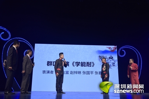 其后還有中國快板藝術委員會主任、著名快板書表演藝術家、非物質文化遺產(chǎn)傳承人、中國曲藝牡丹獎得主李少杰帶來的經(jīng)典快板《天安門廣場看升旗》,質樸的詞句,充沛的情感,以看升旗為出發(fā)點,表達的都是對國家的熱愛;古文新說題材的相聲《趣說文言文》,帶來了頗為新鮮的體驗;還有以深圳市鹽田區(qū)抗戰(zhàn)時期的真人真事改編的評書《龍嘴兒》、傳統(tǒng)相聲《大保鏢》和《學歌曲》等,曲種豐富多樣,令全場掌聲雷動,觀眾們贊不絕口。