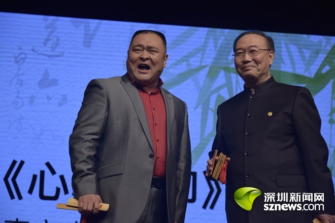 2017年,正值深圳市曲藝家協(xié)會十周年之際,吳金富攜弟子趙梓琳、張國平、張春玉以一段《學能耐》拉開了本場演出的序幕,三位弟子爭做大師兄,紛紛展現(xiàn)自己的獨門絕技,最后師父以一首《重整河山待后生》,唱出自己對深圳曲藝蓬勃發(fā)展,一代更比一代強的美好祝愿。