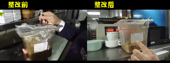 4月19日記者回訪發(fā)現(xiàn)該餐廳負(fù)責(zé)人整改態(tài)度積極,針對檢查中指出的問題進(jìn)行了逐項(xiàng)整改,包括:后廚外專門騰出一個空間擺放食材及工具,不再占用廚房區(qū)域;生熟食已做到分開放置;倉庫擺放整齊有序;消毒柜溫度已可以達(dá)到90度以上;新設(shè)置一個粗加工區(qū)與烹調(diào)區(qū)隔離開;被查封的涼菜間重新進(jìn)行了問題排查與改善。經(jīng)過轄區(qū)食藥監(jiān)管部門的復(fù)評后目前該餐廳的餐飲量化等級已恢復(fù)至B級。該餐廳負(fù)責(zé)人也向記者表示,“星期三查餐廳”不僅是檢查,還給予他們對后廚管理的手把手的指導(dǎo),提升很大,后續(xù)將繼續(xù)加強(qiáng)后廚管理,給消費(fèi)者一個安全健康的就餐環(huán)境保障。