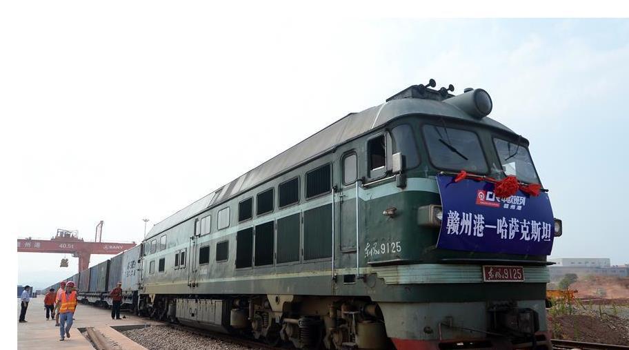 2017年7月27日,在江西省贛州市南康區(qū)贛州港,“贛州港至哈薩克斯坦”中歐班列等待發(fā)車。 來(lái)源:新華網(wǎng)