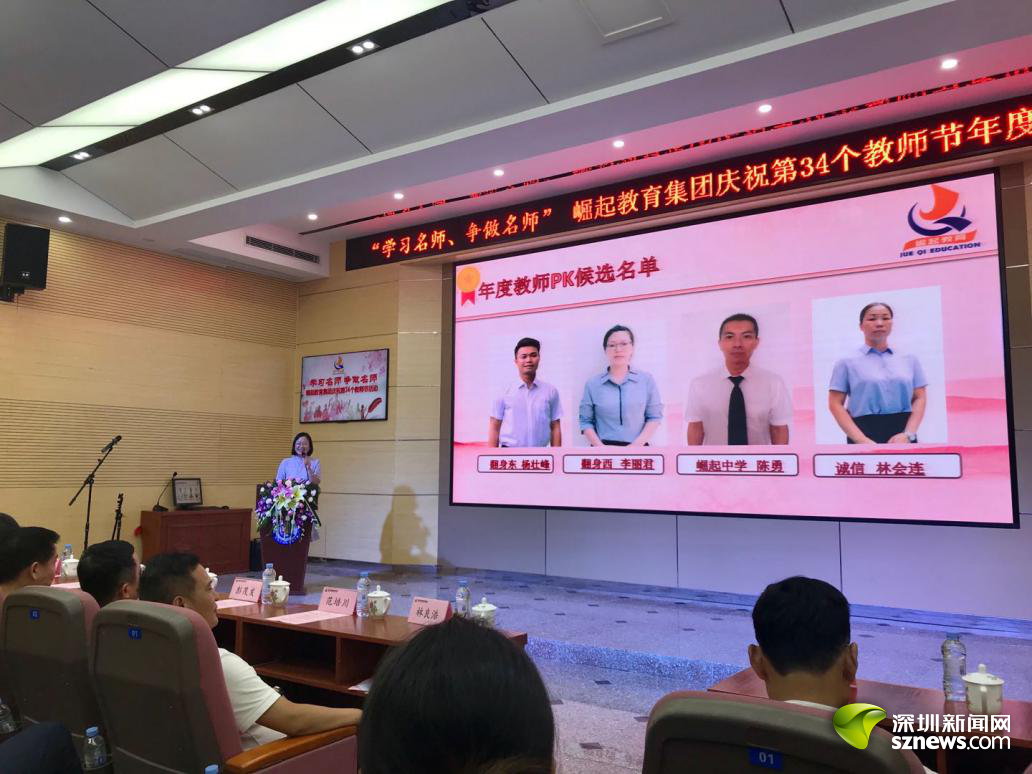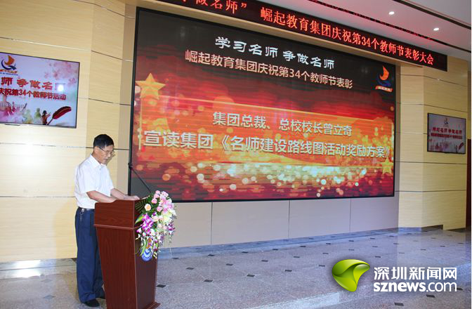 深圳新聞網(wǎng)訊 (記者 曹園芳)2018年9月10日,崛起教育集團(tuán)在崛起實(shí)驗(yàn)中學(xué)舉行慶祝第34個(gè)教師節(jié)暨表彰大會(huì)。崛起教育集團(tuán)董事局主席林良浩、集團(tuán)旗下各學(xué)校領(lǐng)導(dǎo)、優(yōu)秀教師代表、教職工代表,以及深圳市寶安區(qū)教育局副局長(zhǎng)、寶安區(qū)教育科學(xué)研究院院長(zhǎng)、寶安區(qū)教育局民辦教育管理科科長(zhǎng)、寶安區(qū)民辦教育協(xié)會(huì)秘書長(zhǎng)、寶安區(qū)教育局第一學(xué)區(qū)教育辦主任、寶安區(qū)教育局第三學(xué)區(qū)教育辦主任等來(lái)自社會(huì)各屆的領(lǐng)導(dǎo)、嘉賓出席了大會(huì)。
