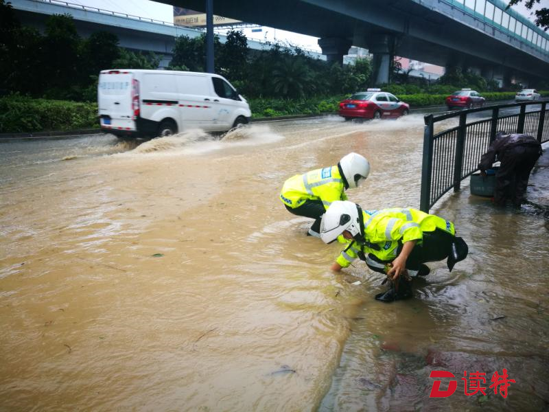 9月16日上午7時許,深圳已接近“山竹”的10級風(fēng)圈,羅湖區(qū)已是風(fēng)雨交加,風(fēng)力正在逐漸增強。艾力軍領(lǐng)著姚書龍、陳展廷、陳展聰3名警員駕駛警車,開始了迎戰(zhàn)臺風(fēng)的巡邏。深南路、文錦路、泥崗路、沿河路……一邊巡邏,一邊尋找道路交通安全隱患,一路上除了警車,已經(jīng)很難看到其它車輛,看著空曠的道路,艾力軍的心里卻感到了踏實。