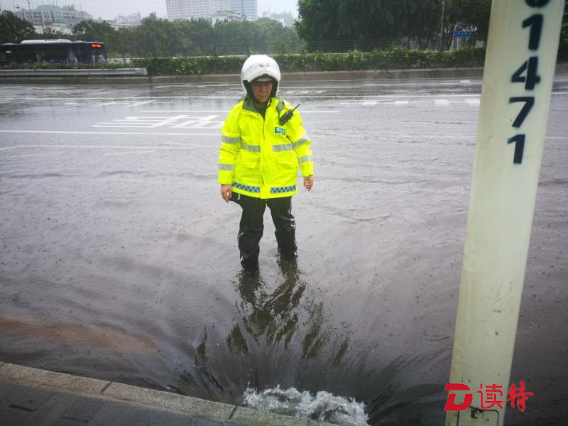 艾力軍今年44歲,1997年入警,加入深圳交警隊伍之前,他做了十幾年的消防工作,始終從事救火、救災等救援工作。面對臺風,他有著豐富的應對經(jīng)驗,但是這次,也著實讓他捏了把冷汗。而就在他在風雨中執(zhí)勤的時候,父母妻兒也正為他擔心受怕。