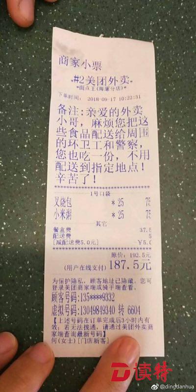 還有為這些前線工人送愛(ài)心外賣訂單的“何女士”