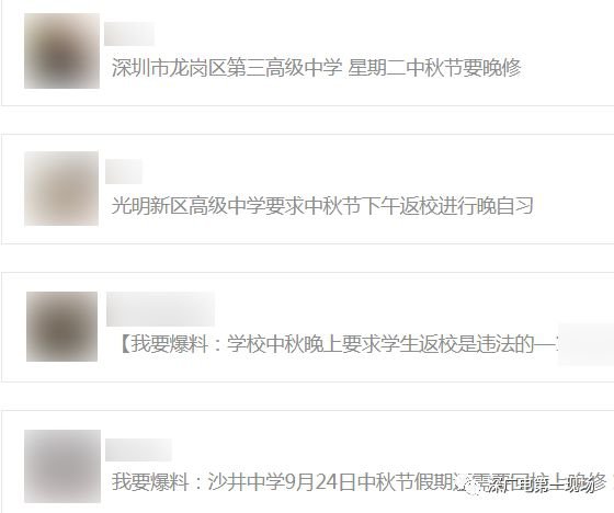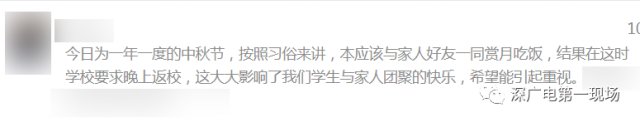 今天,深圳市高級中學(xué)、深圳市福田中學(xué)、沙井中學(xué)、東方英文書院的一些高中學(xué)生,通過在線留言等多種方式,向欄目反映,中秋節(jié)是法定假日,但他們卻沒法和家人一起吃飯團(tuán)聚,更別提賞月看晚會了,原因是學(xué)校要求寄宿的學(xué)生今天晚上要提早返校,參加晚自習(xí)或者考試。