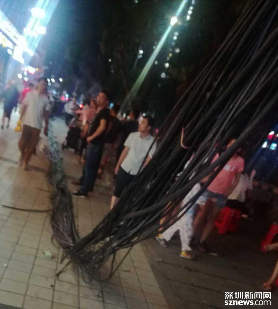 “山竹”刮倒寶安區(qū)石巖街道電線桿,漏電隱患誰來解決?