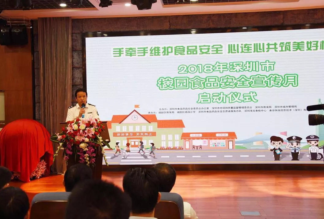 2018年9月27日下午,2018年宣傳月活動(dòng)啟動(dòng)儀式在福田區(qū)荔園小學(xué)(西校區(qū))隆重舉辦,市食藥安辦副主任、市市場(chǎng)和質(zhì)量監(jiān)管委黨組成員、市食品藥品監(jiān)管局副局長(zhǎng)李忠,市城管局副局長(zhǎng)馮增軍,以及市教育局、各區(qū)、新區(qū)食藥安辦、教育行政部門、城市管理部門和市市場(chǎng)和質(zhì)量監(jiān)管委各轄區(qū)局、市教育局直屬各學(xué)校相關(guān)負(fù)責(zé)同志,部分學(xué)生代表參加活動(dòng)。