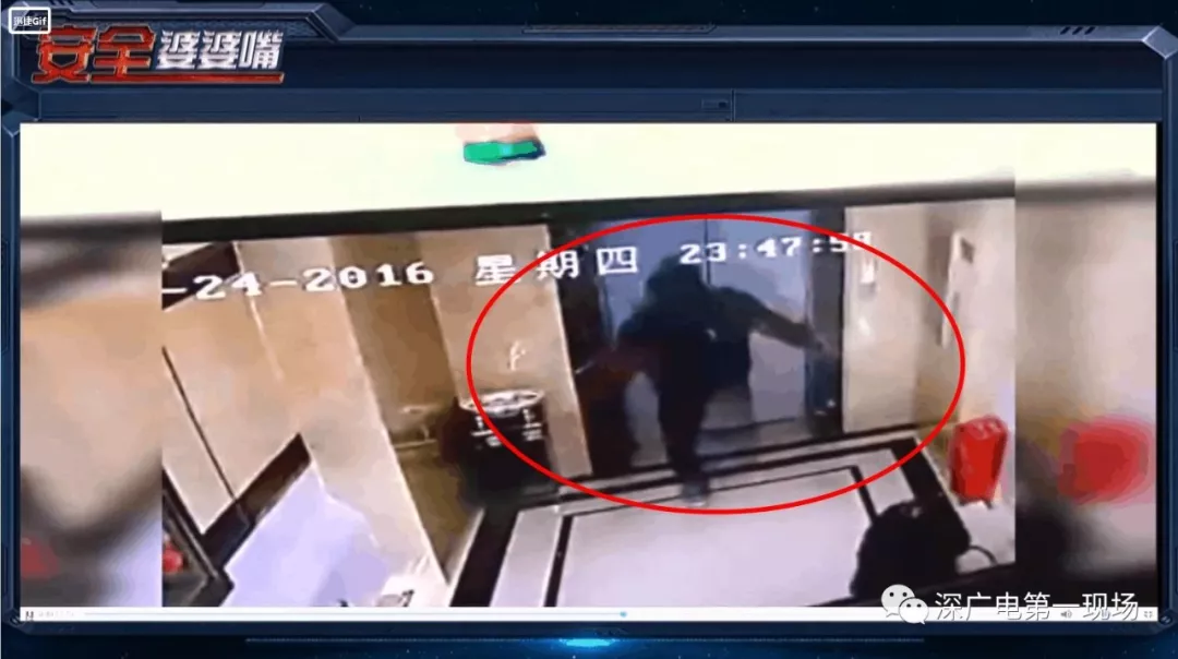 這名男子也是從遠(yuǎn)處飛奔向電梯一腳就踹開(kāi)了廂門,然后不小心踏空掉下了電梯井。