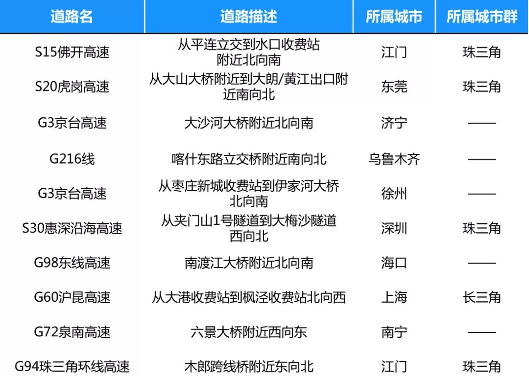 全國十大節(jié)日擁堵路段