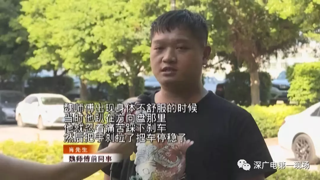 蕭先生是魏師傅的前同事,當天正好乘車出行,他親歷了魏師傅突發(fā)狀況的整個經(jīng)過。他告訴記者,魏師傅忍著巨大的痛苦,將車子停下之后,馬上向他求助。