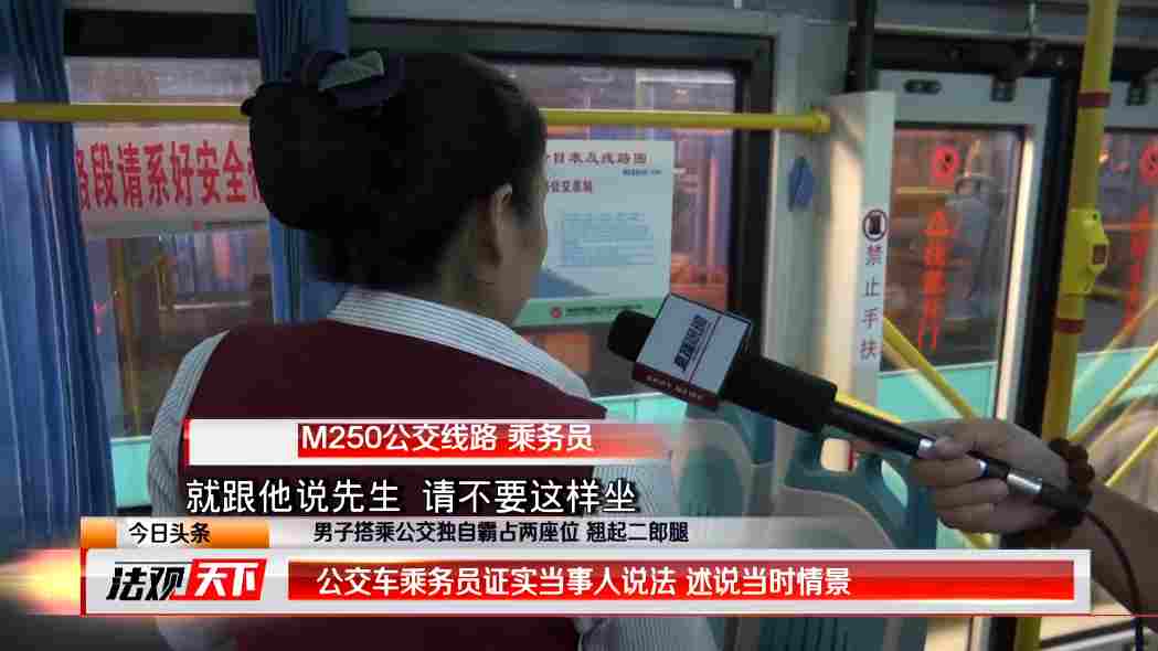 西部公汽M250線路乘務(wù)員和記者說(shuō)到:當(dāng)時(shí)我發(fā)現(xiàn)他這樣坐以后,就跟他說(shuō)先生,請(qǐng)不要這樣坐,然后可以給別的乘客讓個(gè)座位,當(dāng)時(shí)他就有點(diǎn)很不友善地說(shuō),你要干嘛,你要干什么。