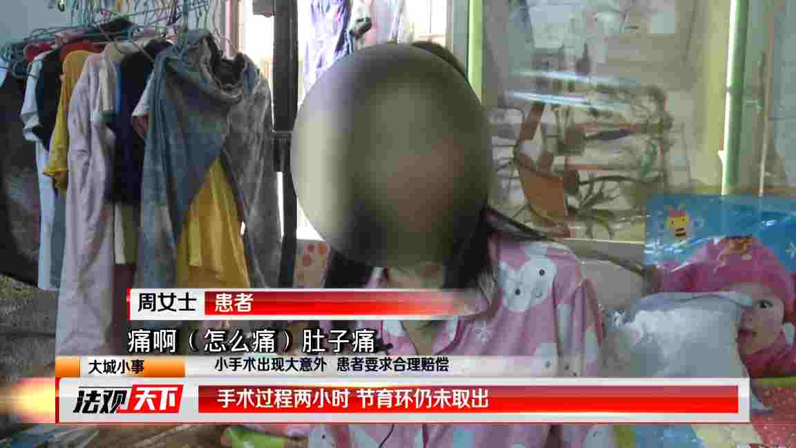 周女士說(shuō),原本醫(yī)生在電話中說(shuō)要打麻藥,但是到了手術(shù)臺(tái)卻一直沒(méi)有進(jìn)行這個(gè)步驟。而接下來(lái)的手術(shù)過(guò)程也非常不順利,整整進(jìn)行了兩個(gè)小時(shí),節(jié)育環(huán)仍未取出。由于周女士疼痛難忍,最終手術(shù)不得不停止。