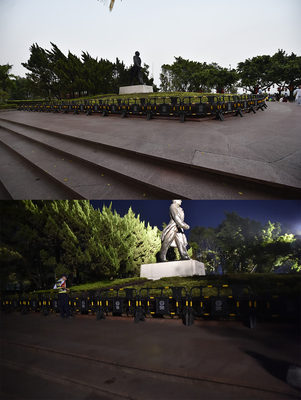 蓮花山觀景臺,面對鄧小平雕塑左側沒有垃圾殘留,落葉也被清掃干凈