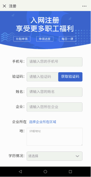 1.新注冊(cè)職工必須填寫完整信息--點(diǎn)擊提交資料--完成注冊(cè),系統(tǒng)自動(dòng)跳轉(zhuǎn)領(lǐng)取補(bǔ)貼頁(yè)面;
