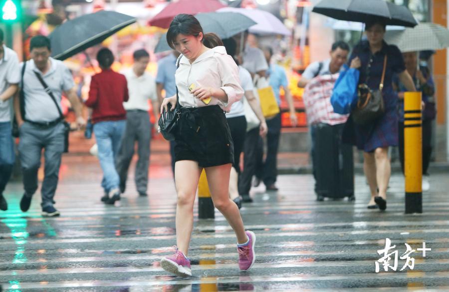10月10日,受冷空氣影響,深圳降溫又降雨。在羅湖區(qū)街頭,傍晚時分涼意撲面而來,許多行人添上衣物,在冷風(fēng)細(xì)雨中匆匆前行。南方日報記者 朱洪波 攝影報道