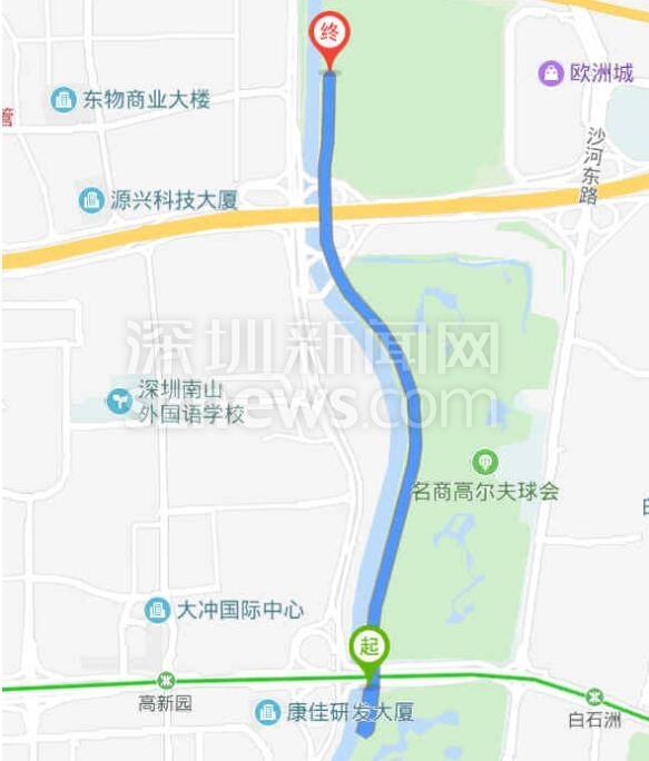 該網(wǎng)友在帖文中稱,聽(tīng)聞濱海沙河西立交橋下到深南沙河西天橋的騎行路段今年9月份開(kāi)通了,于是他周末帶著孩子沿沙河?xùn)|側(cè)騎行,準(zhǔn)備一睹深圳最美騎行路段的風(fēng)景。由于周末限騎行原則,該網(wǎng)友被迫輾轉(zhuǎn)數(shù)次才到達(dá)大沙河公園。具體騎行路程如下: