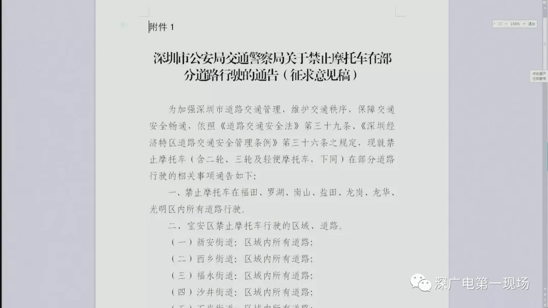 時(shí)隔15年后,根據(jù)市政府規(guī)范性文件管理要求,9月14日深圳交警聯(lián)合市政府法制辦發(fā)布了《深圳市公安局交通警察局關(guān)于禁止摩托車在我市部分道路行駛的通告》,對外征求意見10天,其中一個(gè)意見方向是全面取消禁摩令管理措施,全面放開摩托車,讓摩托車在全市道路通行。