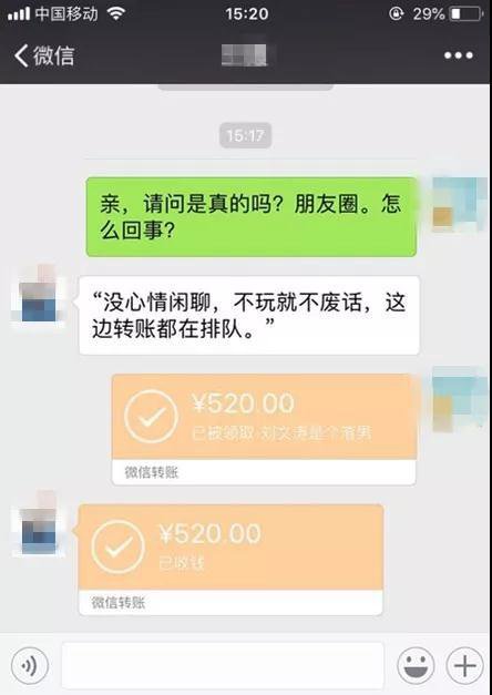 " 只要給我轉(zhuǎn)賬 520 元,備注 XX 是個渣男,我截圖發(fā)給他,我就返還十倍金額 "