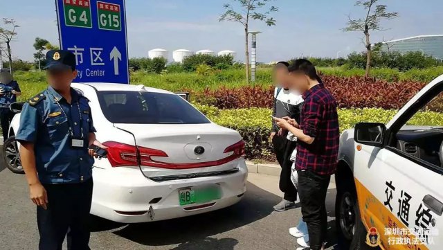 行動(dòng)過程中,執(zhí)法人員在空港六道發(fā)現(xiàn)一輛車牌號(hào)為粵 BF*****的白色小轎車形跡可疑,于是上前準(zhǔn)備示意該車司機(jī)停車接受檢查,不料該車司機(jī)突然停車并迅速向后倒車試圖逃跑。
