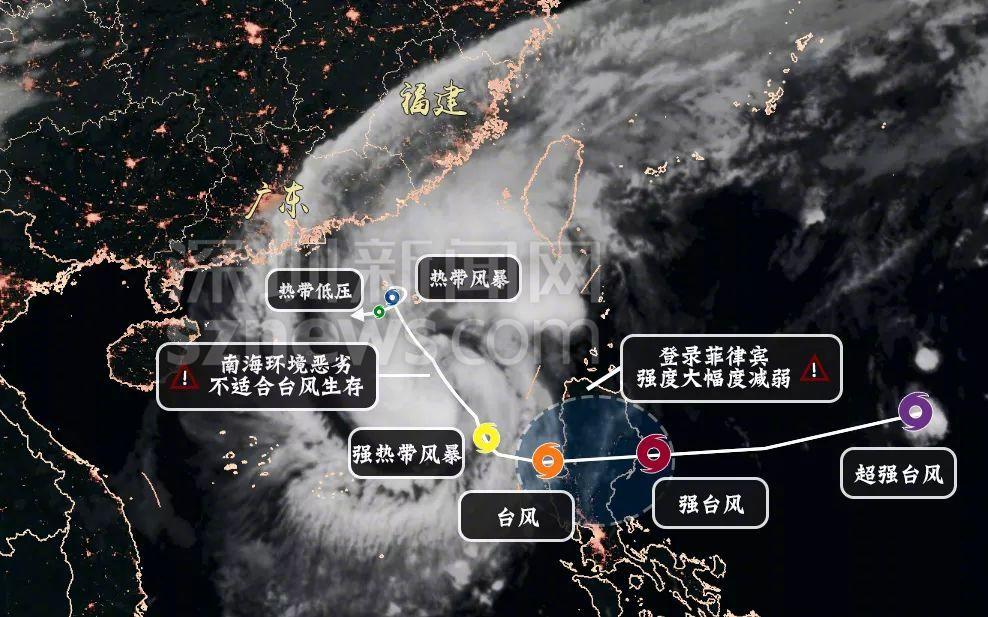 深圳市氣象局發(fā)布的玉兔從超強臺風到減弱為熱帶低壓圖
