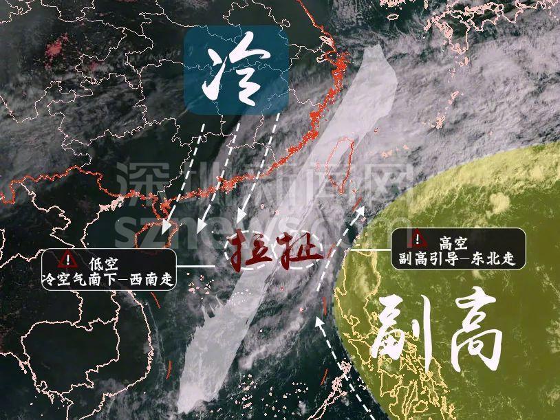 深圳市氣象局發(fā)布的冷空氣和海溫破壞臺風結(jié)構(gòu)示意圖