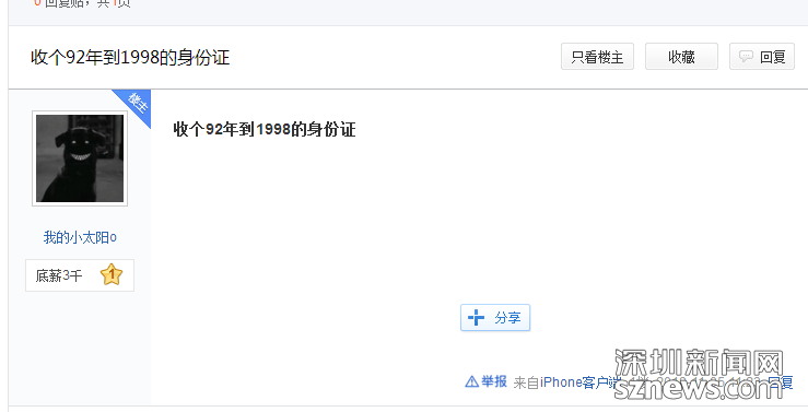 記者在網(wǎng)友的提示下,點擊進入百度貼吧龍華吧(以下簡稱龍華吧)。截至記者發(fā)稿時,根據(jù)貼吧的公開信息顯示,該貼吧獲得329273名網(wǎng)友的關注,共發(fā)布過9282277篇帖文。記者通過首頁初步瀏覽發(fā)現(xiàn),龍華吧大部分帖文都涉及龍華、坂田片區(qū)網(wǎng)友的生活工作經(jīng)歷,并無違法違規(guī)的相關內(nèi)容。但是通過吧內(nèi)搜索“修車”“身份證”“微信”等關鍵詞時,搜出的帖文信息卻令人瞠目結(jié)舌!