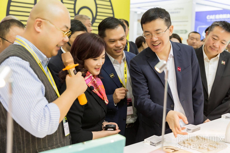 深圳市副市長艾學(xué)峰(右二)參觀第六屆深圳國際工業(yè)設(shè)計大展的設(shè)計作品(主辦方供圖)