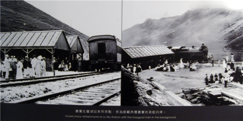 左圖為參加通車典禮的中英嘉賓在羅湖車站享用茶點(diǎn)。右圖為首航列車通過時(shí)的場(chǎng)景