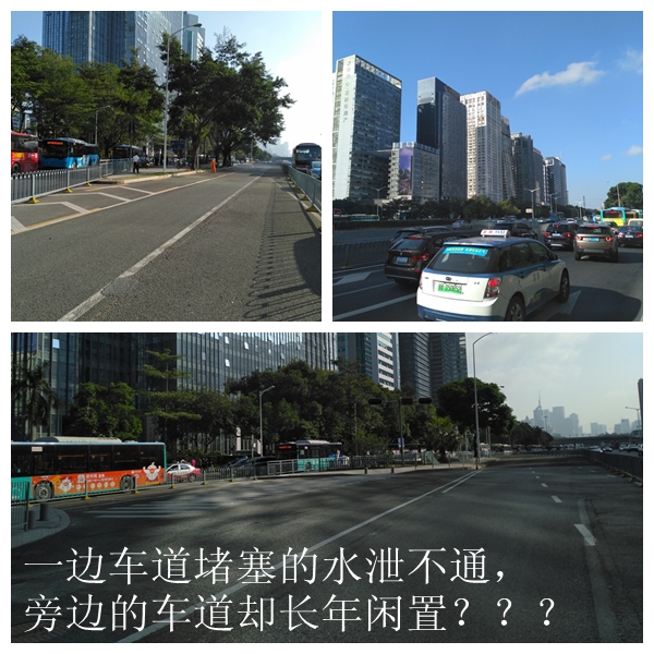 一邊是擁堵不堪的狹小道路,一邊是長年閑置的車道,網(wǎng)友在公交車上看著旁邊空空如也的馬路,手表走過該打卡的點,他又遲到了。
