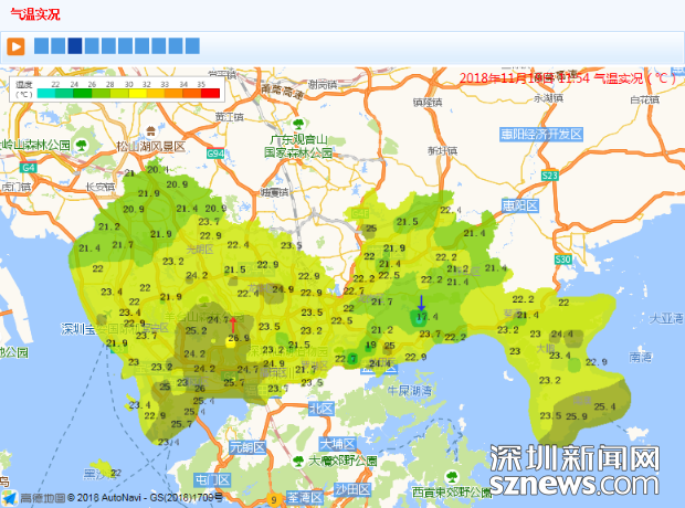 市氣象局預(yù)計,11月20-21日,深圳市以多云間陰天為主,部分時間有零星小雨; 22日受冷空氣影響,有小雨,北風(fēng)加大,氣溫下降,天氣轉(zhuǎn)涼,日溫差小。23-24日,以多云天氣為主,可見陽光,早晚清涼。