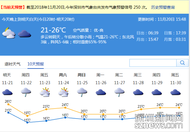 市氣象局發(fā)布未來十天天氣預(yù)報(數(shù)據(jù)更新于11月20日15時48分)