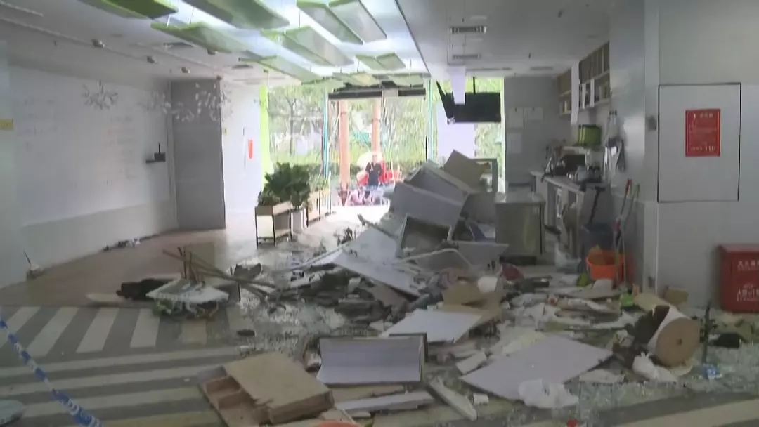 今天上午,記者來到該家飲品店,此時,店里是一片狼藉,玻璃碎片散落一地,飲品店四周也拉起了警戒線。