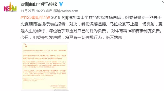 除了抄近道,比賽過程中還被曝出存在套牌、替跑等多種違規(guī)行為。例如,從網(wǎng)上流傳的比賽參賽選手照片可以發(fā)現(xiàn),同樣是B22622的號(hào)碼布,一位參賽選手的號(hào)碼布是綠色的,另一位參賽選手的號(hào)碼布則是藍(lán)色的。除此之外,不少號(hào)碼布都被曝出存在套牌行為。有市民表示,這樣違背體育精神,也是自己騙自己,實(shí)在不可取。
