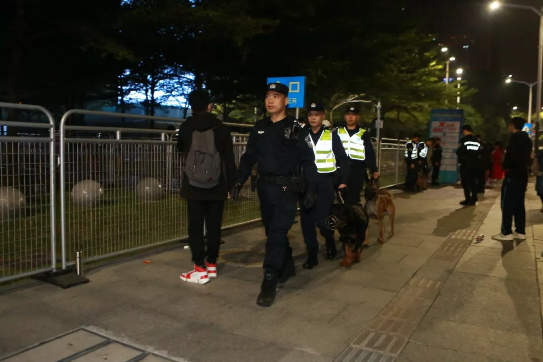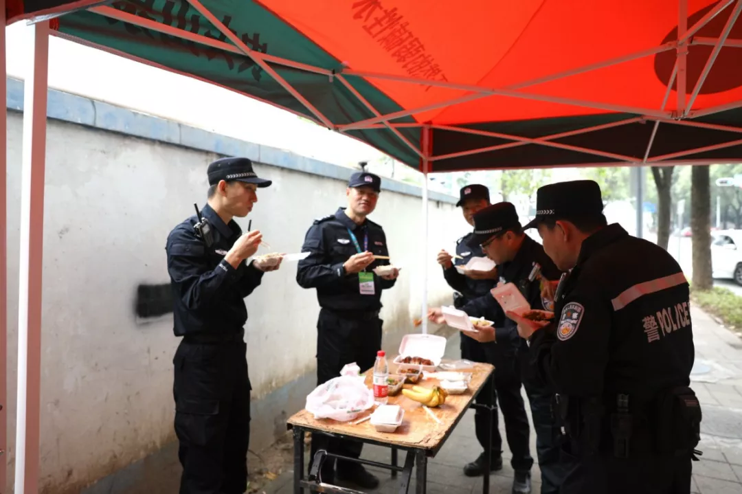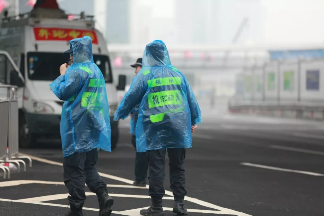 參戰(zhàn)民警、輔警們冒雨堅守,維護秩序