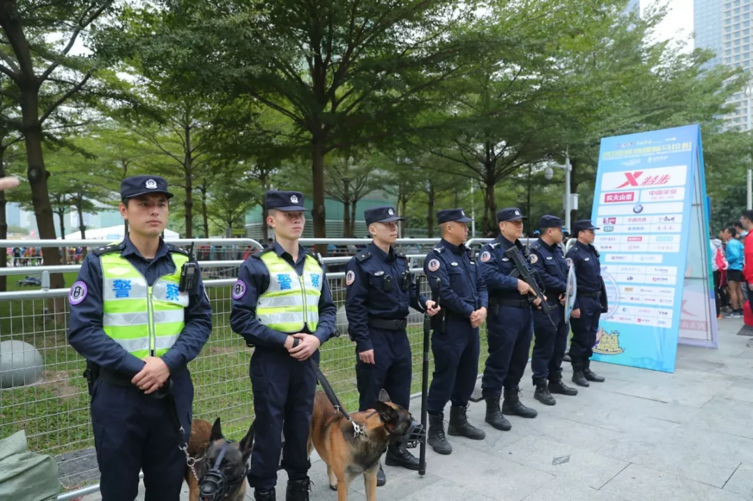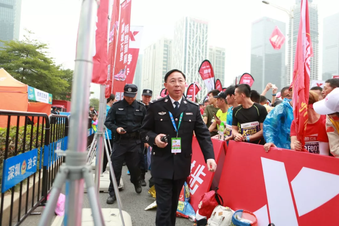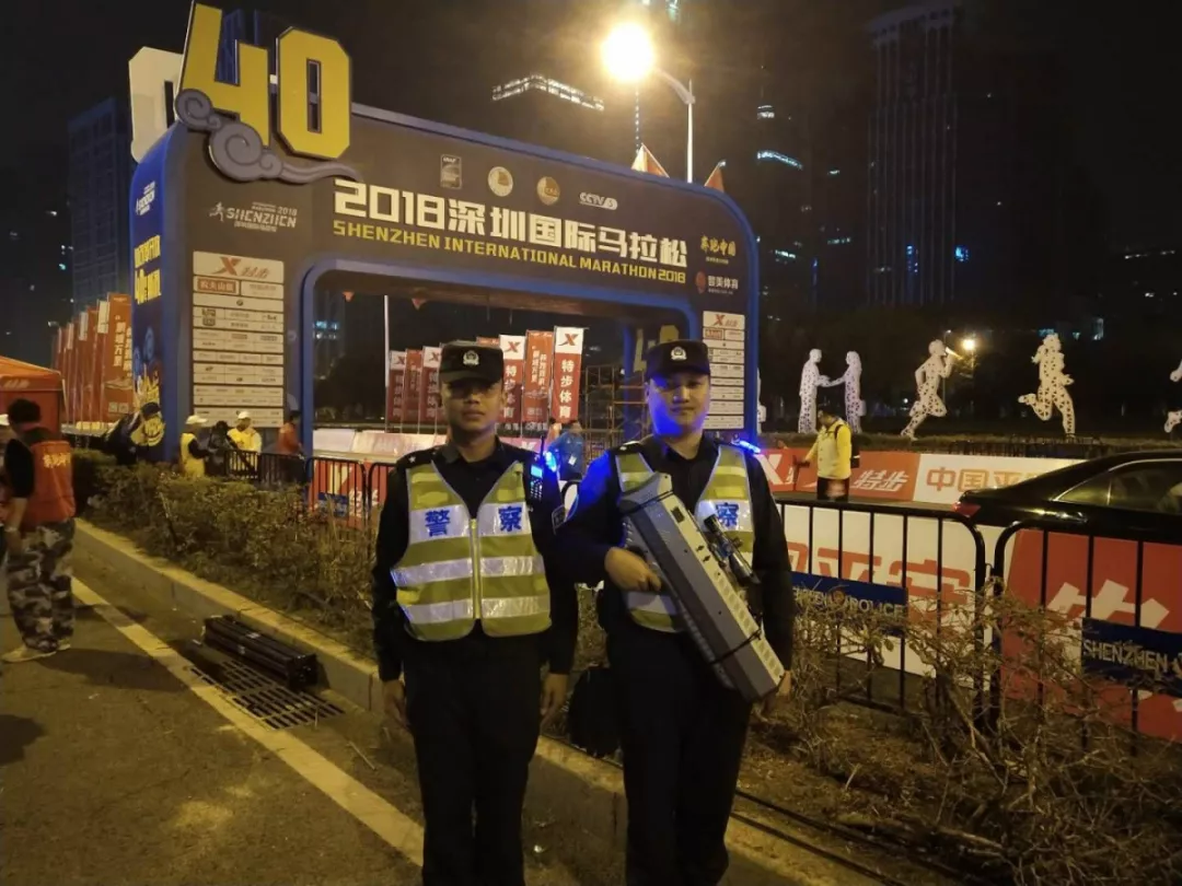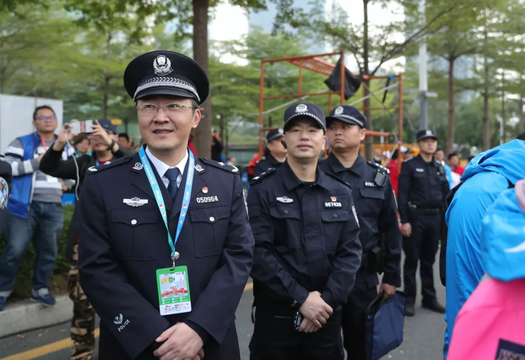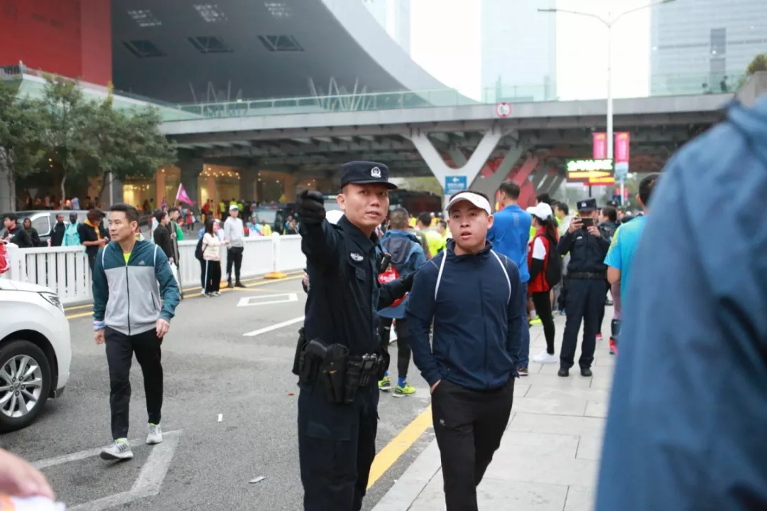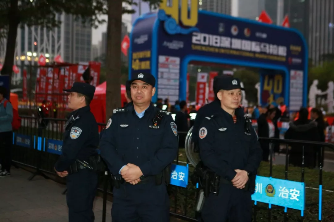 為全力做好此次馬拉松安保工作,福田警方提前謀劃、科學部署,承擔全程、半程馬拉松起點及6.2公里賽道的安全保衛(wèi),共出動警力1972人,啟用20套4G現(xiàn)場圖傳 “千里眼”,20套視頻識別探頭“守點”;警力實時定位系統(tǒng)、118個高低空視頻預案“守線”;71套現(xiàn)場視頻執(zhí)法記錄儀。從凌晨4點到下午2點,用長達10個小時的安?!榜R拉松”為賽事的順利開展保駕護航。