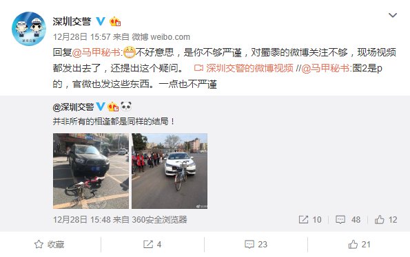 這……真的不是 P圖?確定不是擺拍?圖片發(fā)出之后,不少網友表示難以置信,甚至有人 @深圳交警表示抗議:"圖是 p的,官微也發(fā)這些東西。一點也不嚴謹"。深圳交警看后只能亮出以上視頻,"以示清白"!