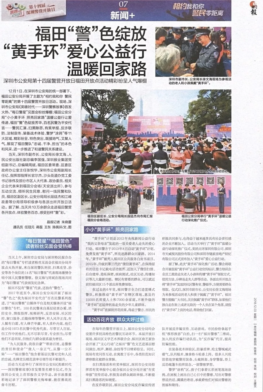 ★★12月1日,在深圳市公安局的統(tǒng)一部署下,福田公安分局開(kāi)展了主題為“相約我和你警民零距離”的第十四屆警營(yíng)開(kāi)放日活動(dòng)。現(xiàn)場(chǎng),深圳市公安局《英雄時(shí)代——深圳警察故事》首發(fā)火熱、“每日警星”見(jiàn)面會(huì)粉絲爆棚;福田公安分局“小小黃手環(huán)照亮回家路”溫暖公益行讓愛(ài)傳遞,福田“警”色綻放芳華、百名民警為平安代言……警民匯演、掃黑除惡、有獎(jiǎng)舉報(bào)、反詐聯(lián)防、法制宣傳、裝備戰(zhàn)術(shù)體驗(yàn)、警夢(mèng)涂鴉等11大區(qū)域,精彩紛呈、特色突出,進(jìn)一步推進(jìn)了和諧警民關(guān)系建設(shè)。